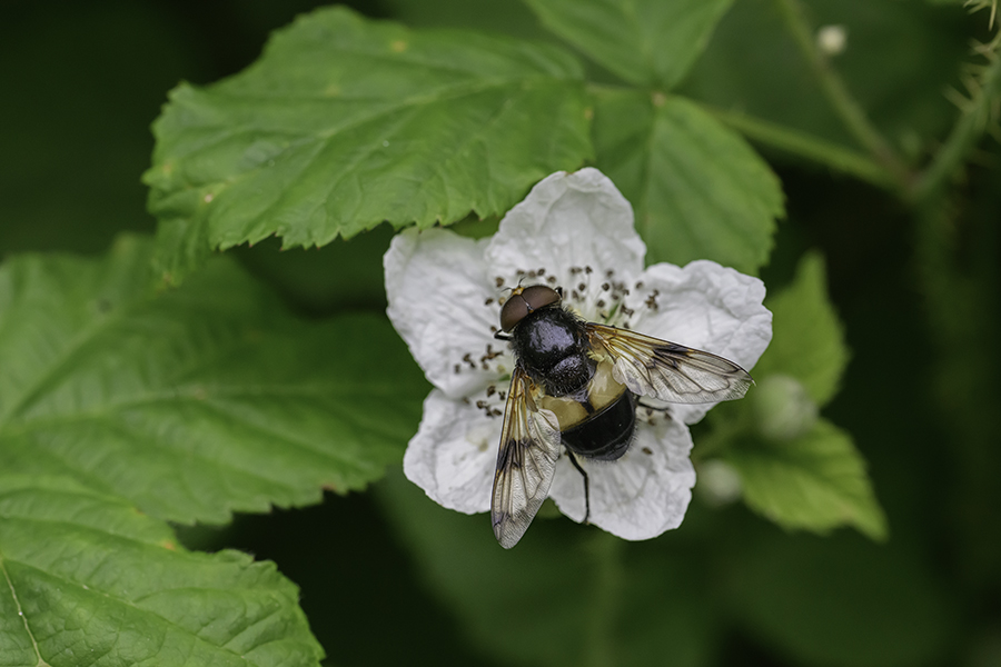 Over the past two years we have been noticing a new visitor to the area – the rather splendid hornet mimic hoverfly (Volucella zonaria). This is the UK’s largest hoverfly at almost 2cm long, and, as its name suggests, it is an excellent mimic of the hornet, but unlike the hornett is harmless to humans. Only a very rare visitor to the country up to the 1940s, it has become more common in Southern England in recent years, and is still spreading northwards, perhaps as a result of climate change. It is particularly prevalent in urban areas. The adults are migratory and the larvae live inside wasps’ nests. WNS member Alan Crawford found this one in his Wrenthorpe garden and previously, they have previously been seen in Ryhill.